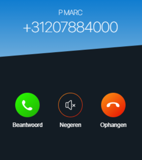 Wanneer je een inkomend gesprek ontvangt, kan je ervoor kiezen om dit gesprek te beantwoorden of te weigeren.