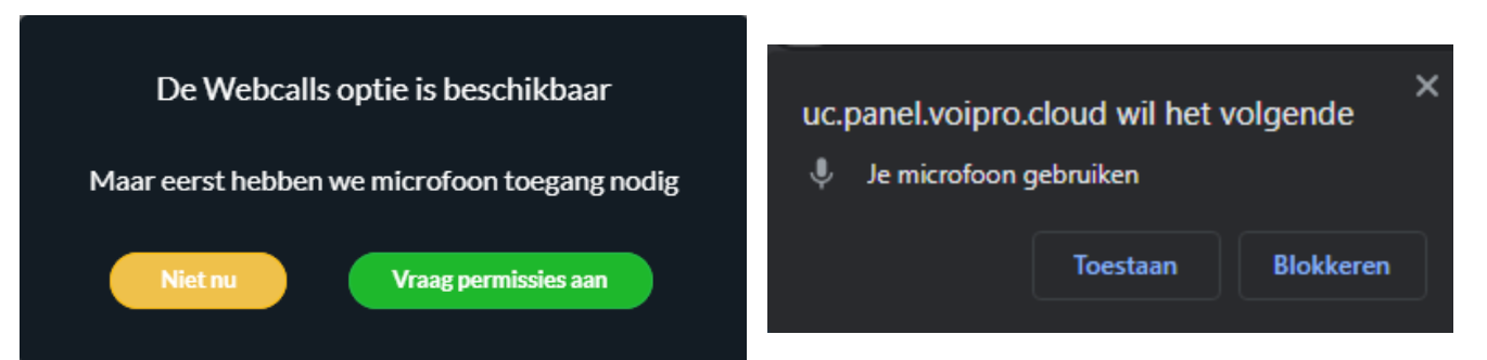 Voor de juiste werking van Webcalls is het van belang dat je de permissies toe staat.